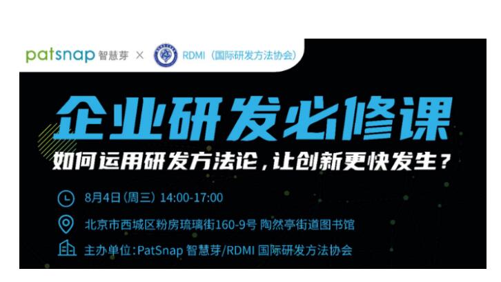 RDMI(国际研发方法协会)/智慧芽联合北京线下沙龙活动通知 - 研发方法论与专利情报助力突破企业研发困局