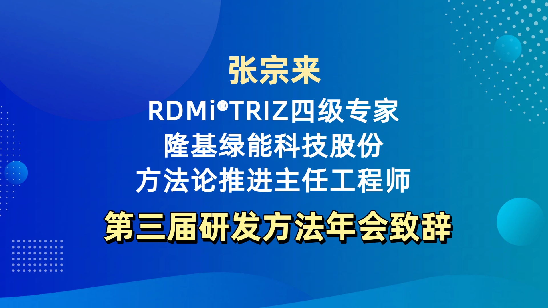 张宗来 第三届研发方法年会致辞