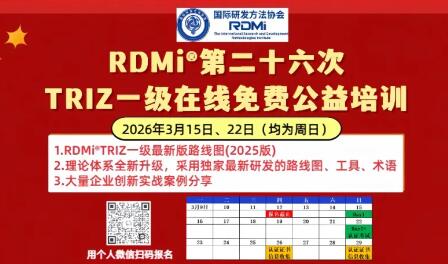 方法论让创新更简单!TRIZ五级大师亲授妙招!RDMi®第26期免费TRIZ一级公益培训,3月两天证书0元拿!数千家企业已扎堆学